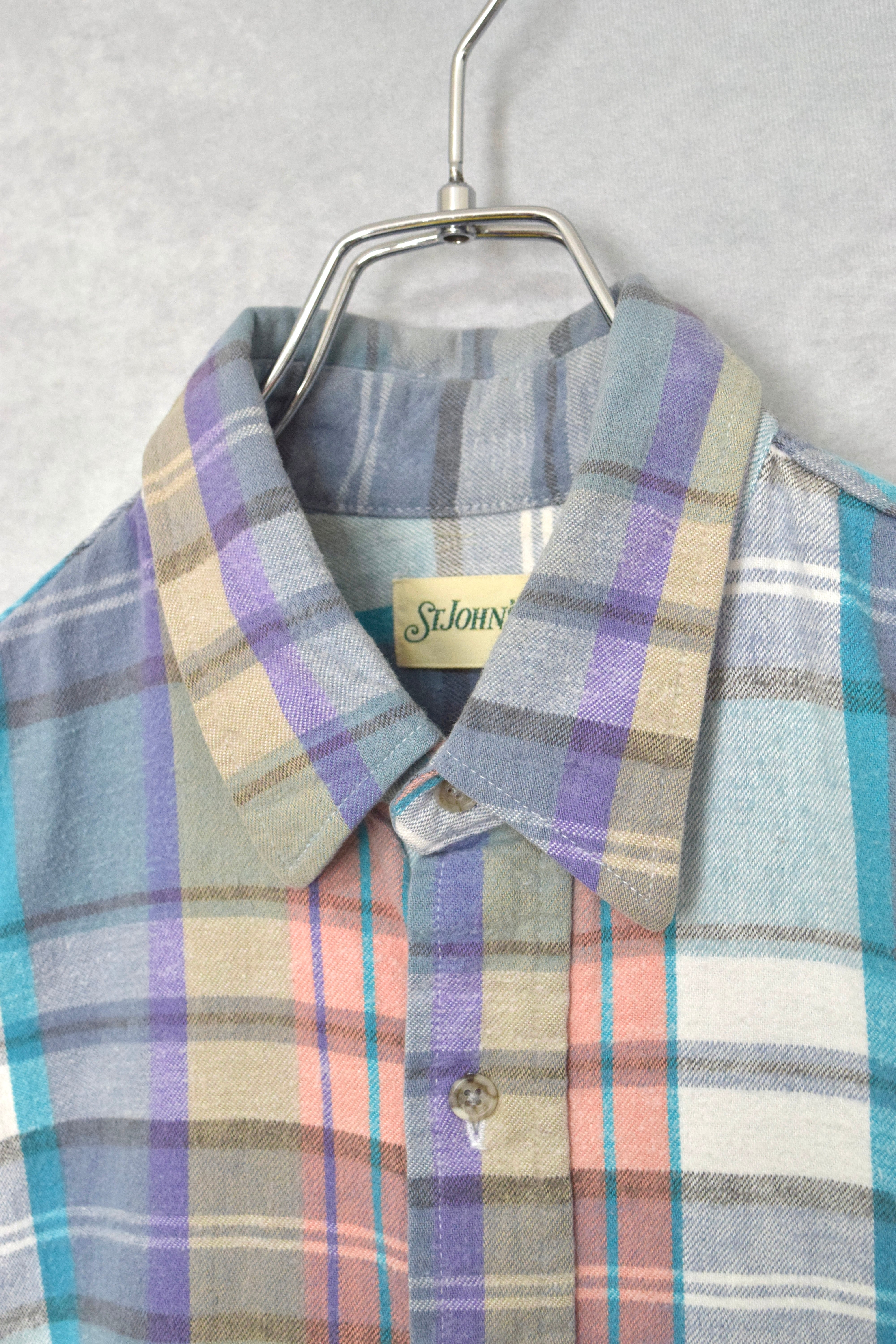 old " st jones bay " cotton flannel shirts / made in usa / size L