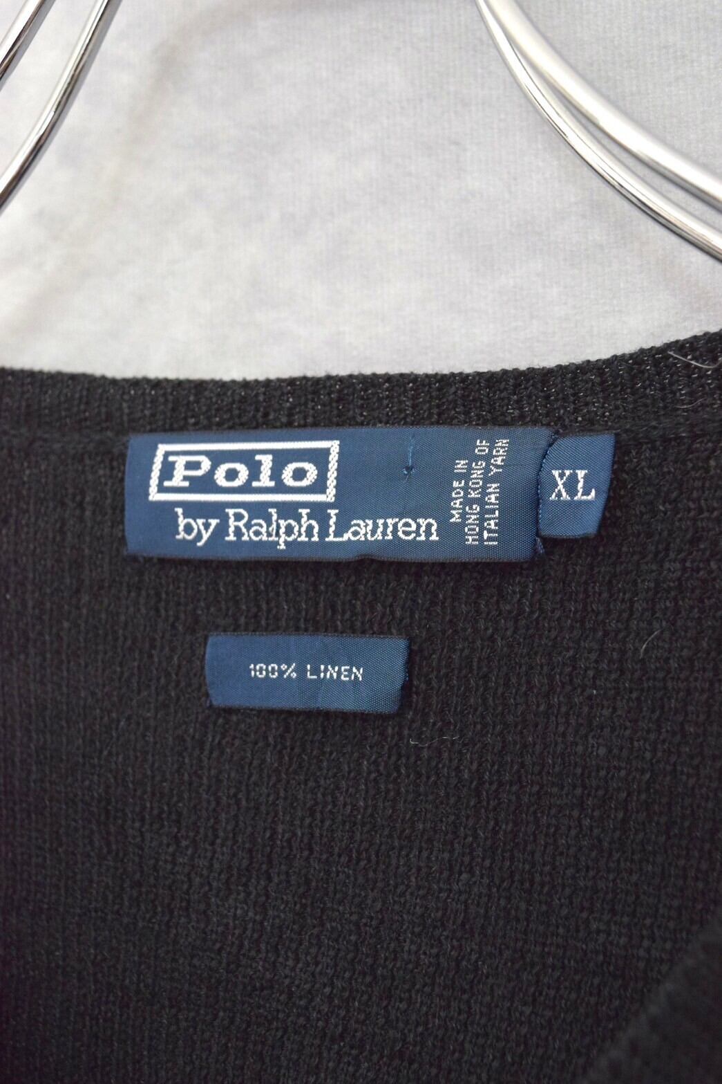 old " polo ralph lauren " 100% black linen v-neck knit / size XL