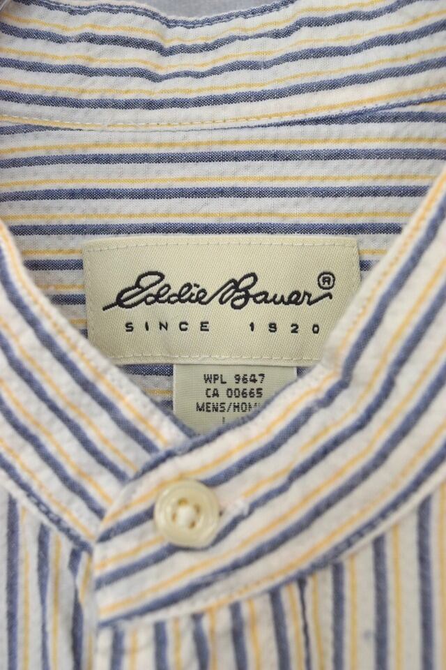 old “ eddie bauer ” stripe pattern stand collar seersucer shirts / size L