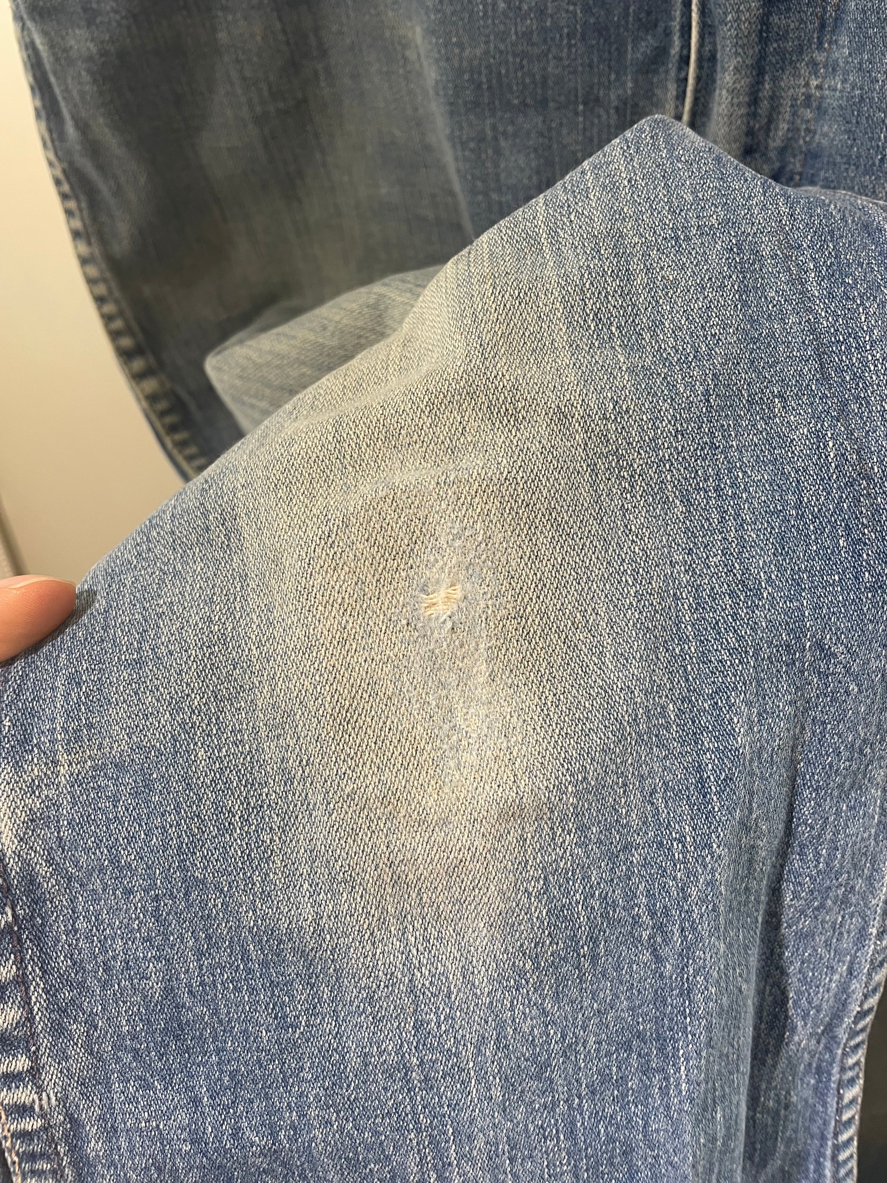 右膝付近にリペア跡がありますが丁寧にリペアされておりほとんど目立ちません。