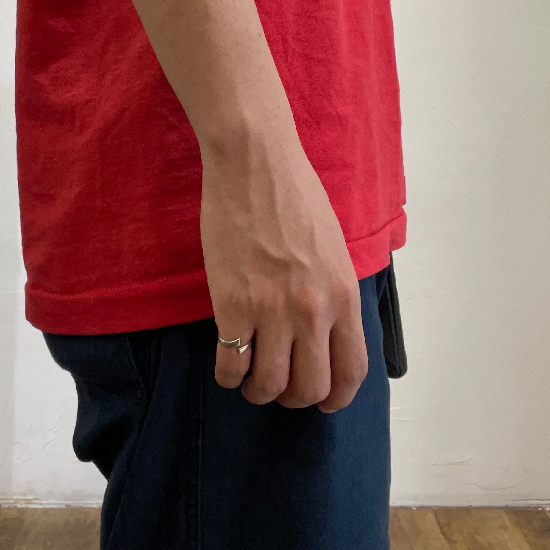 人差し指などに大ぶりなものを持ってきて、小指にこちらを付けるなどおすすめ。