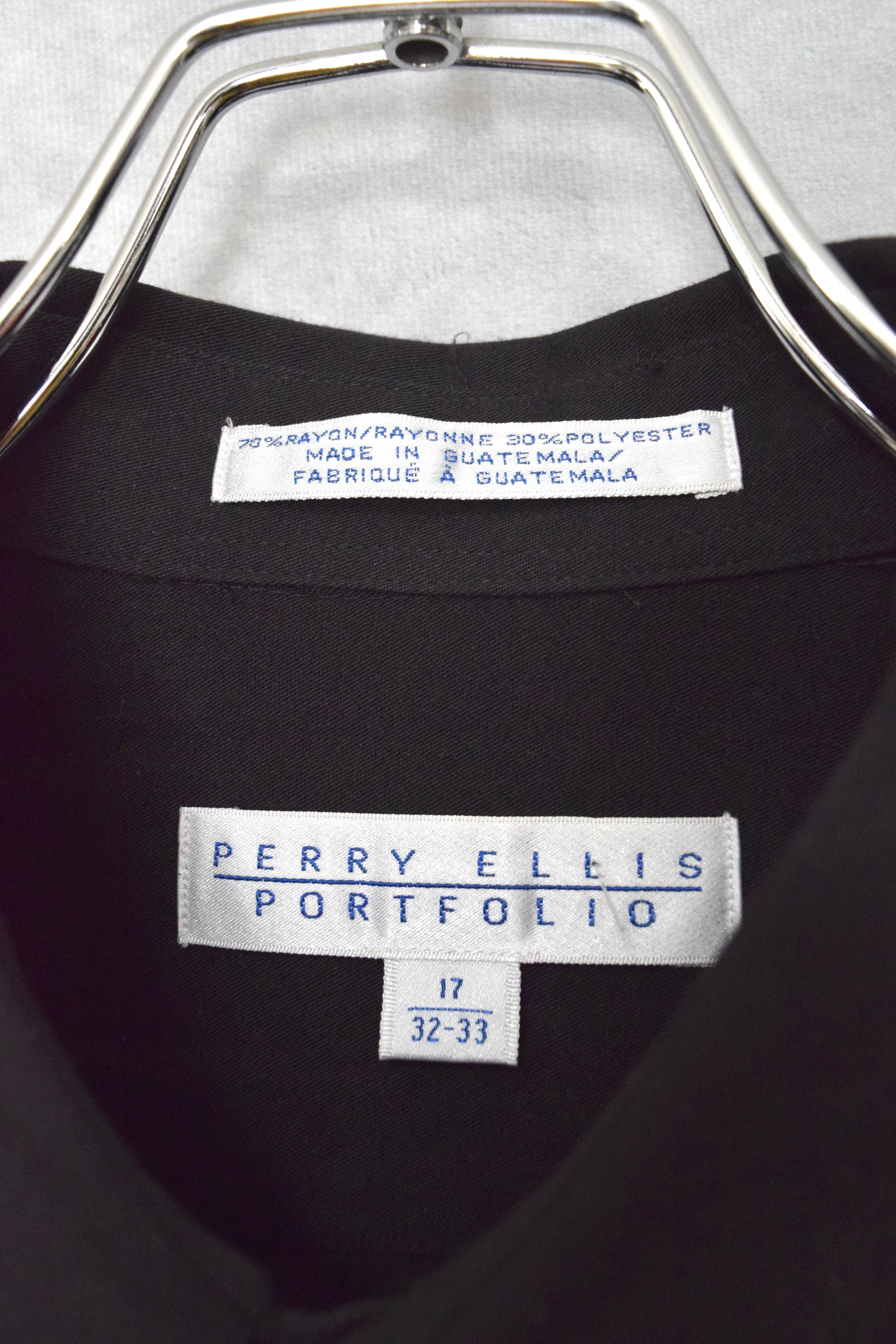 old “ perry ellis “ black rayon x poly shirts / size 17