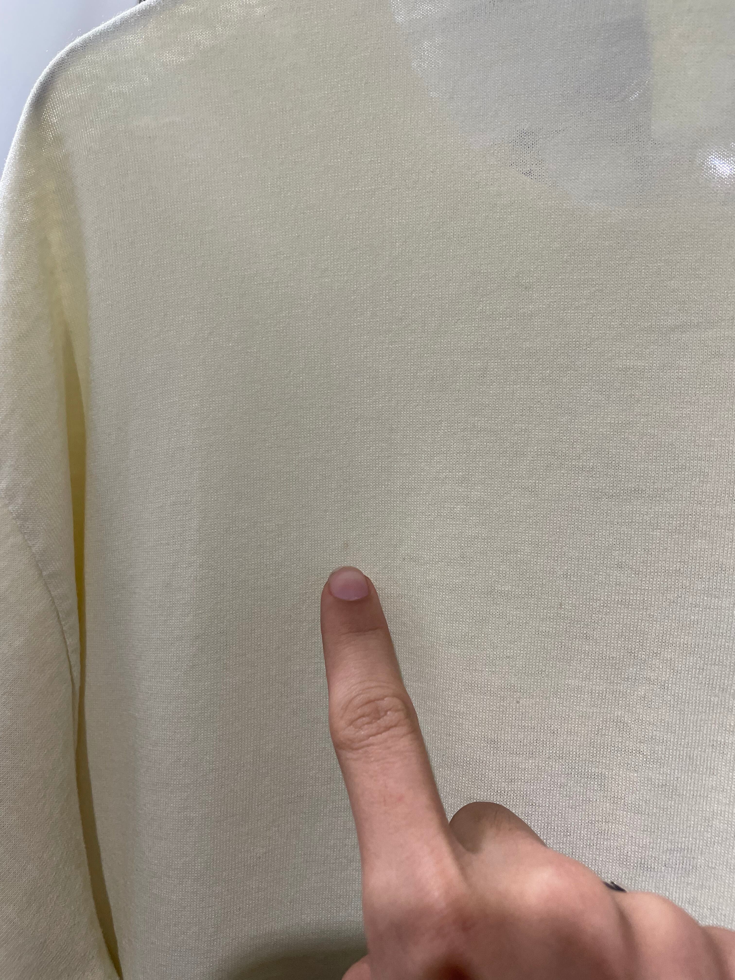 フロントプリント付近と背面に目立たない程度の小さな薄汚れがあります。