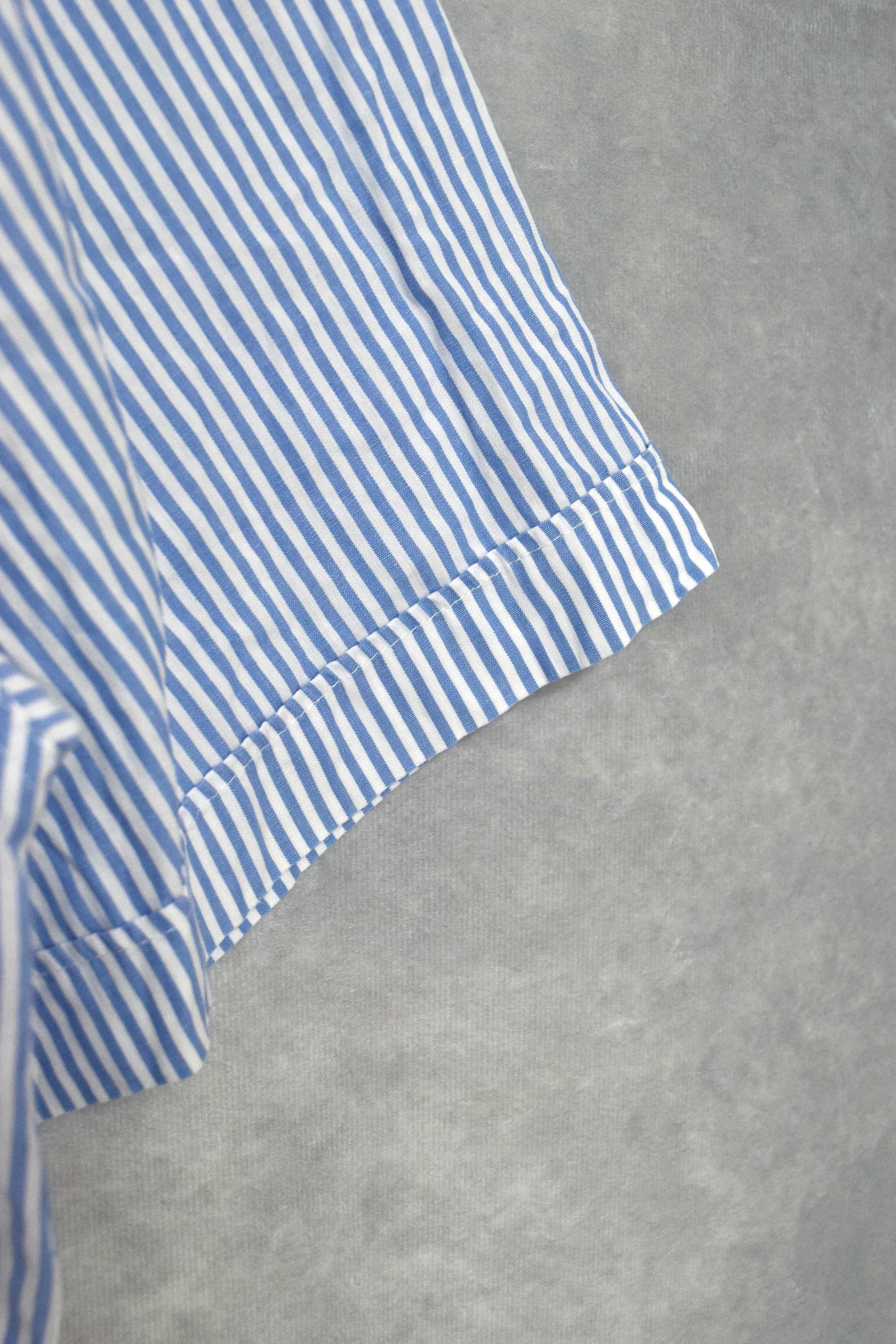 清涼感のあるホワイトとサックスブルーのキャンディストライプ。