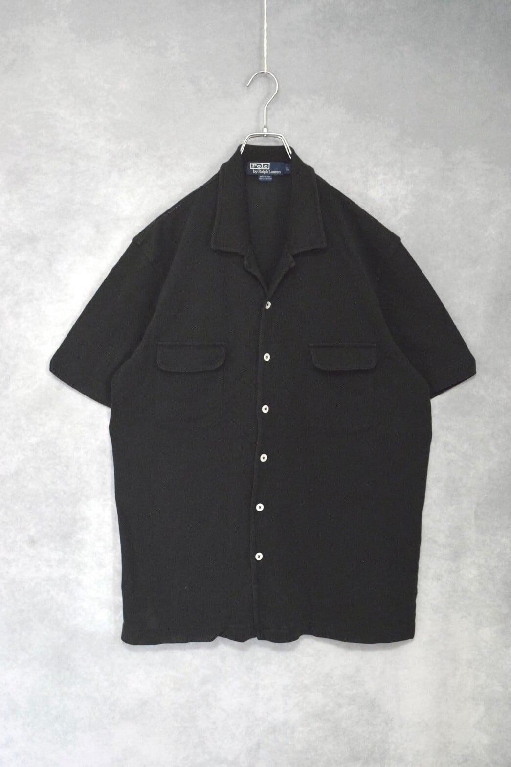 old “ polo ralph lauren ” black mesh cotton open collar s/s shirts / size L