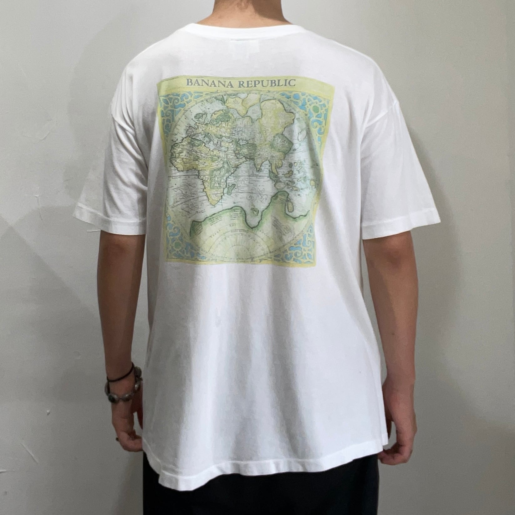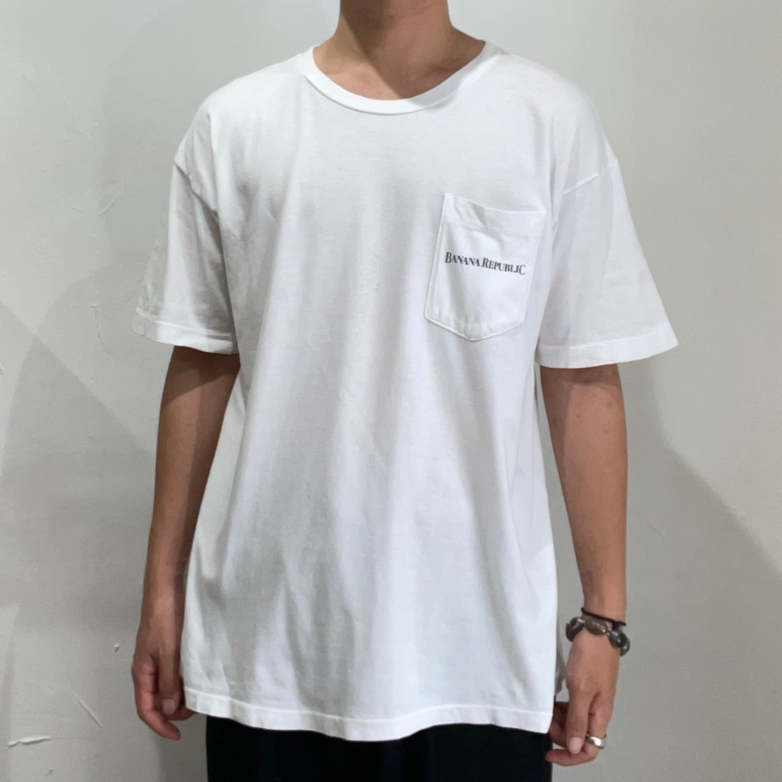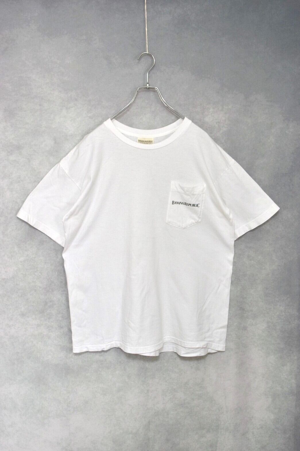 old “ banana republic ” white cotton printed pocket t-shirts / made in usa / size m