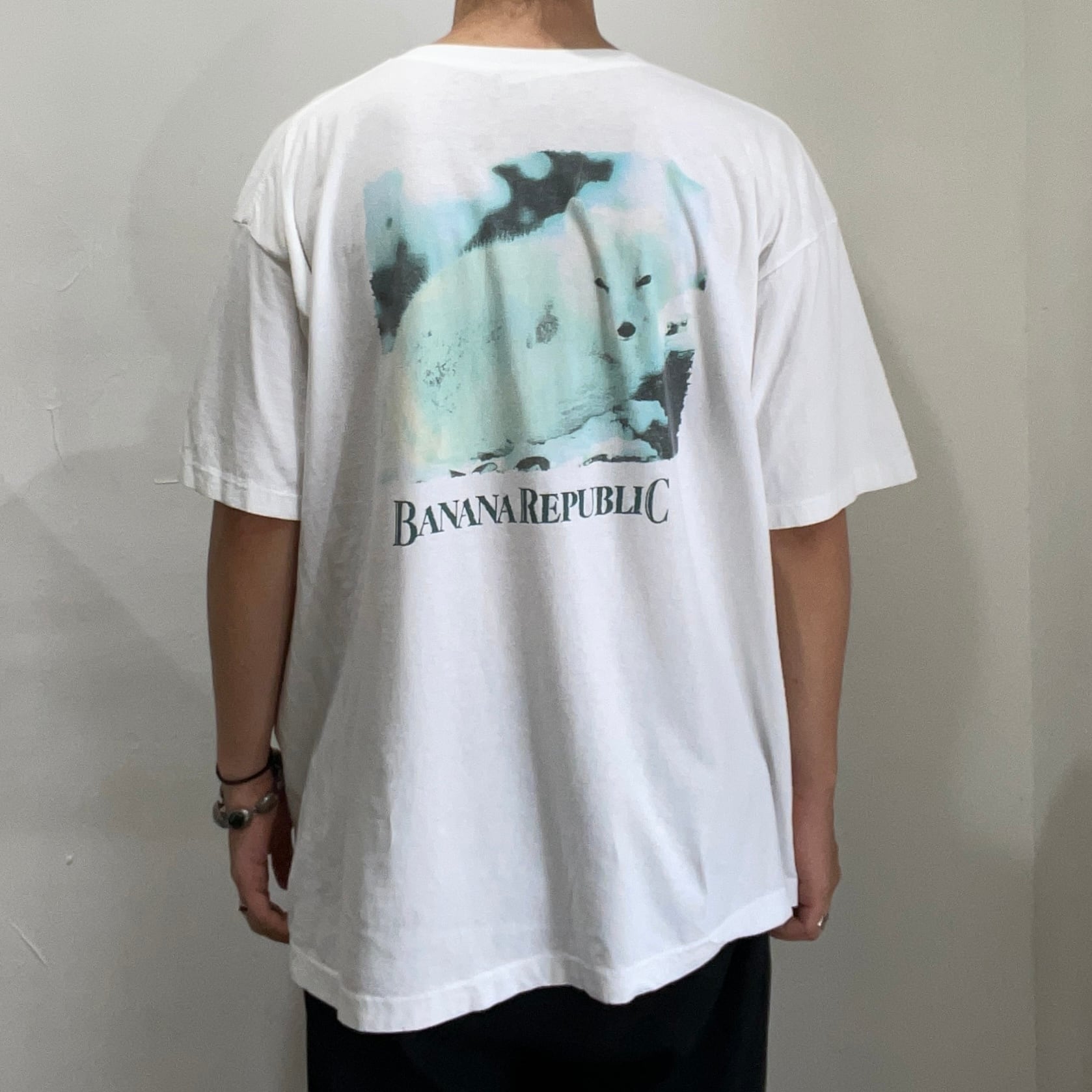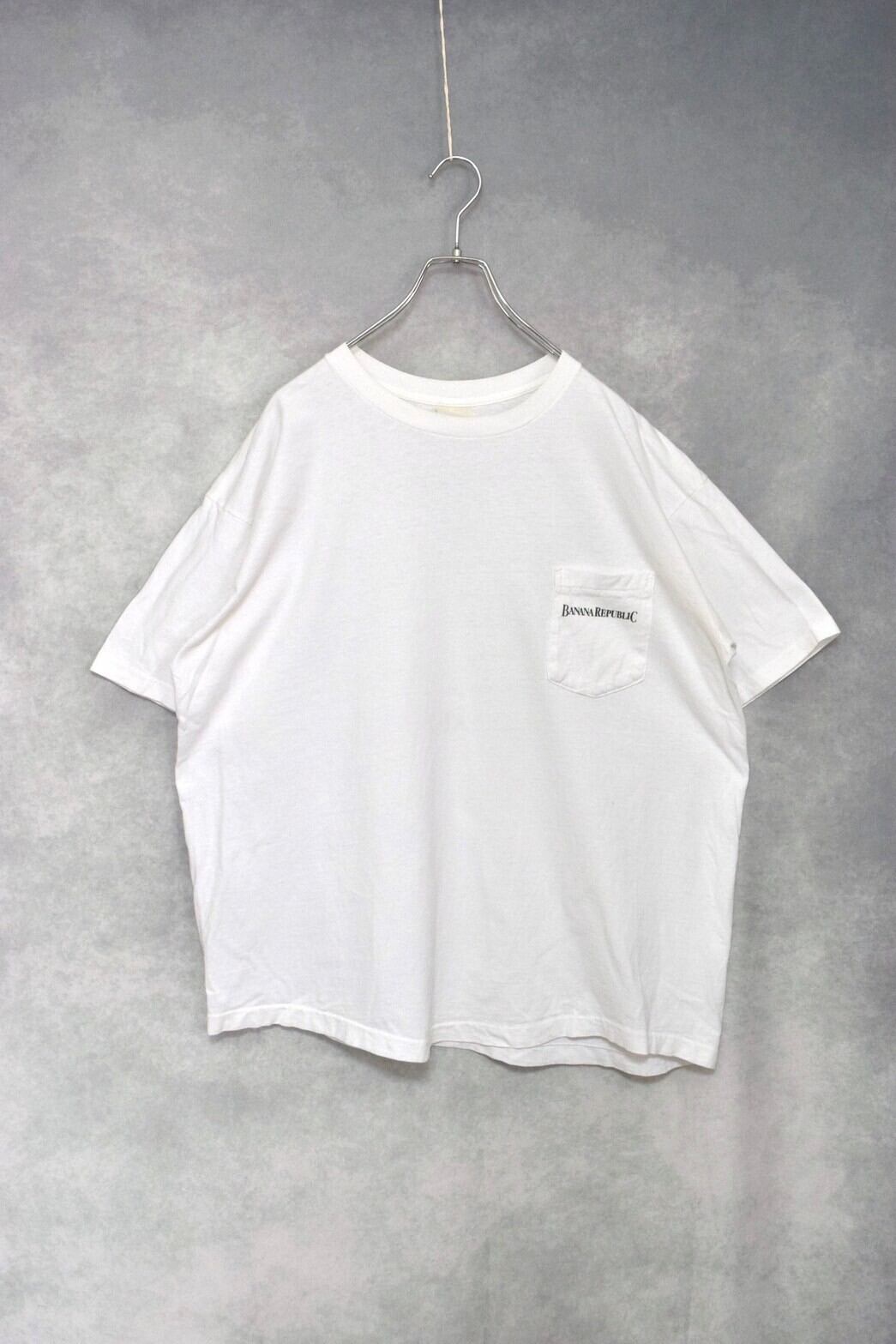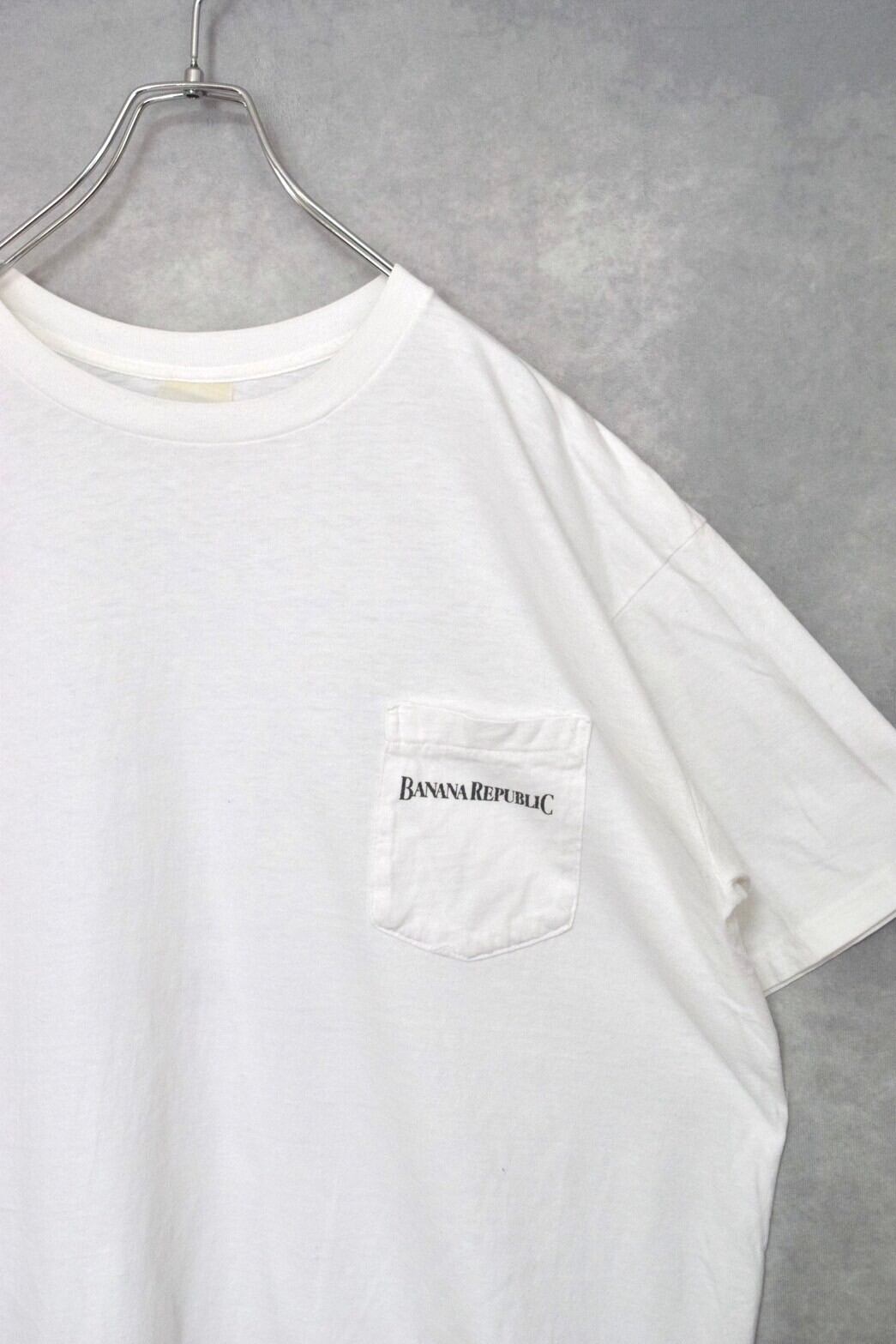 old “ banana republic ” white cotton printed pocket t-shirts / made in usa / size ML