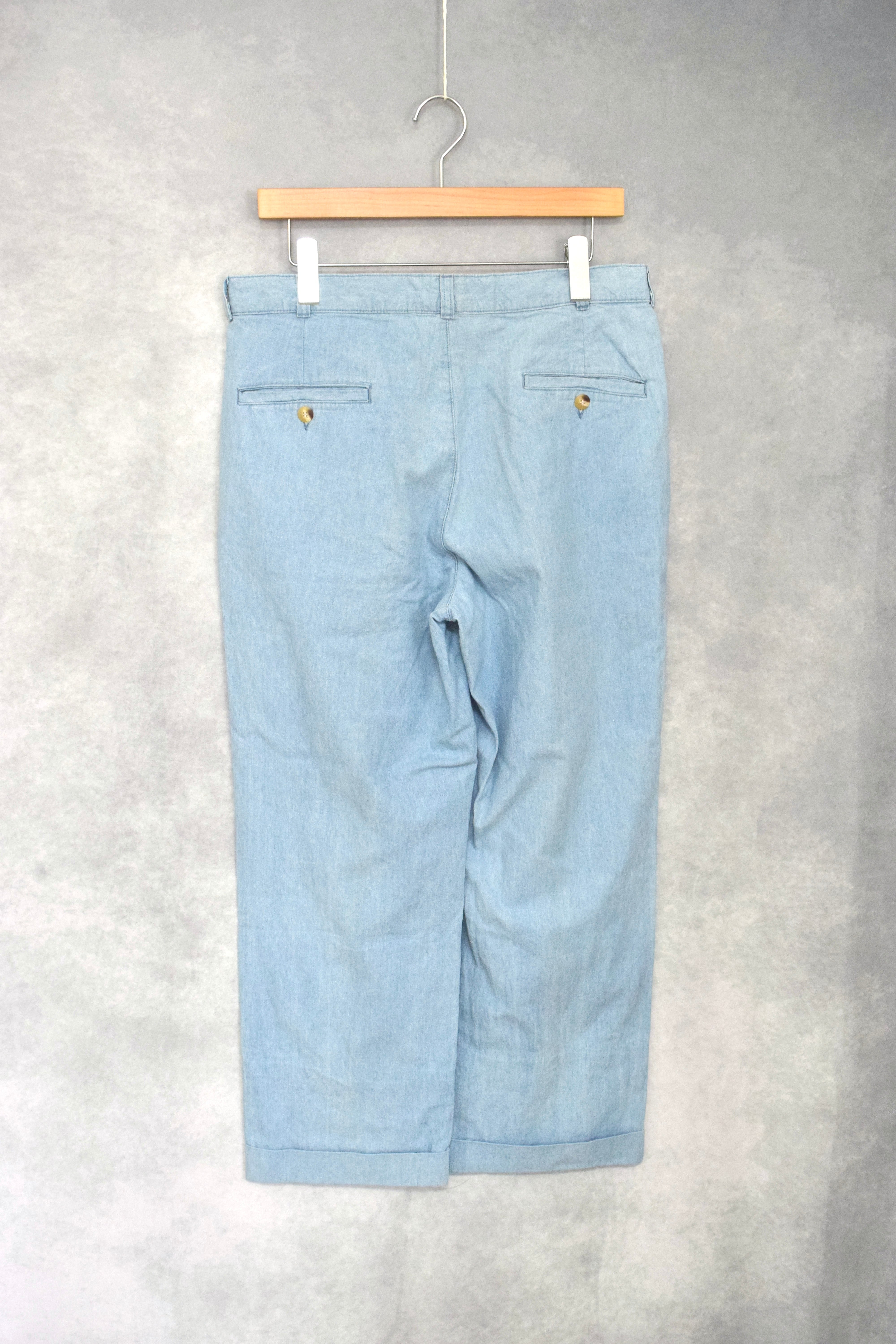 シャンブレー生地はシャツなどトップスではよく見かけますがパンツではあまりない印象。