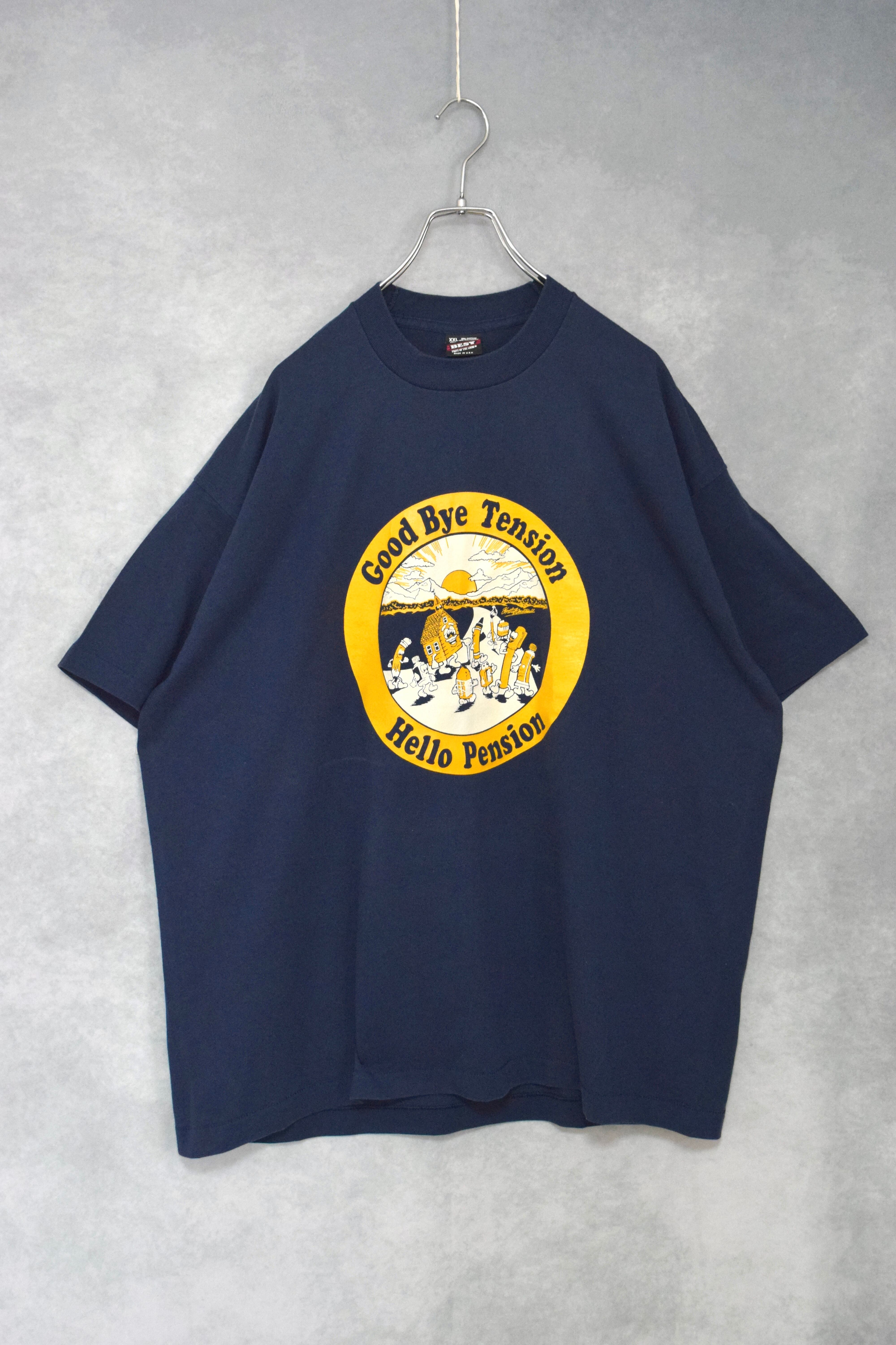 ネイビーのボディに映えるイエローとホワイトのプリント。