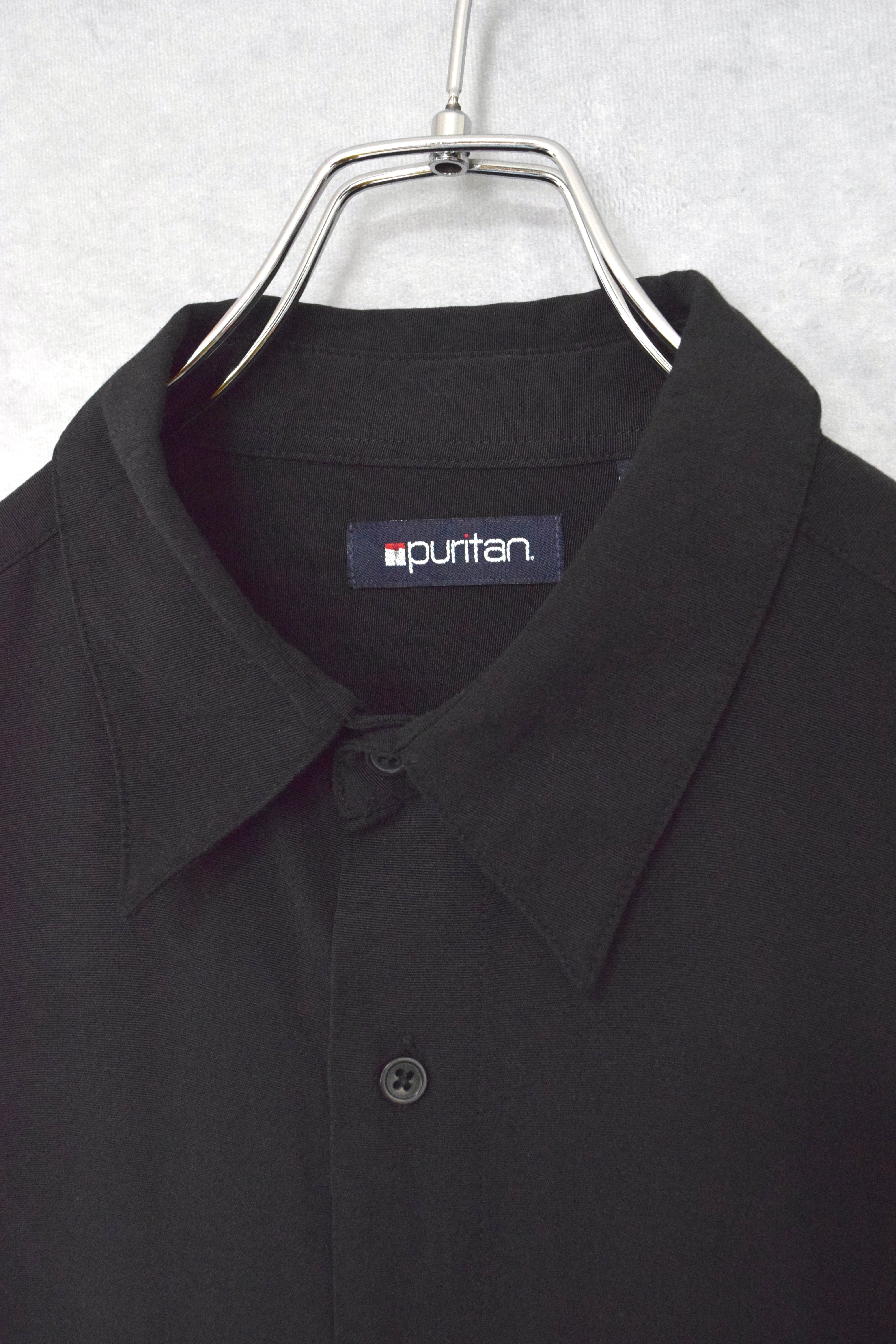 ピューリタンのブラックレーヨンポリのボックスシャツ。