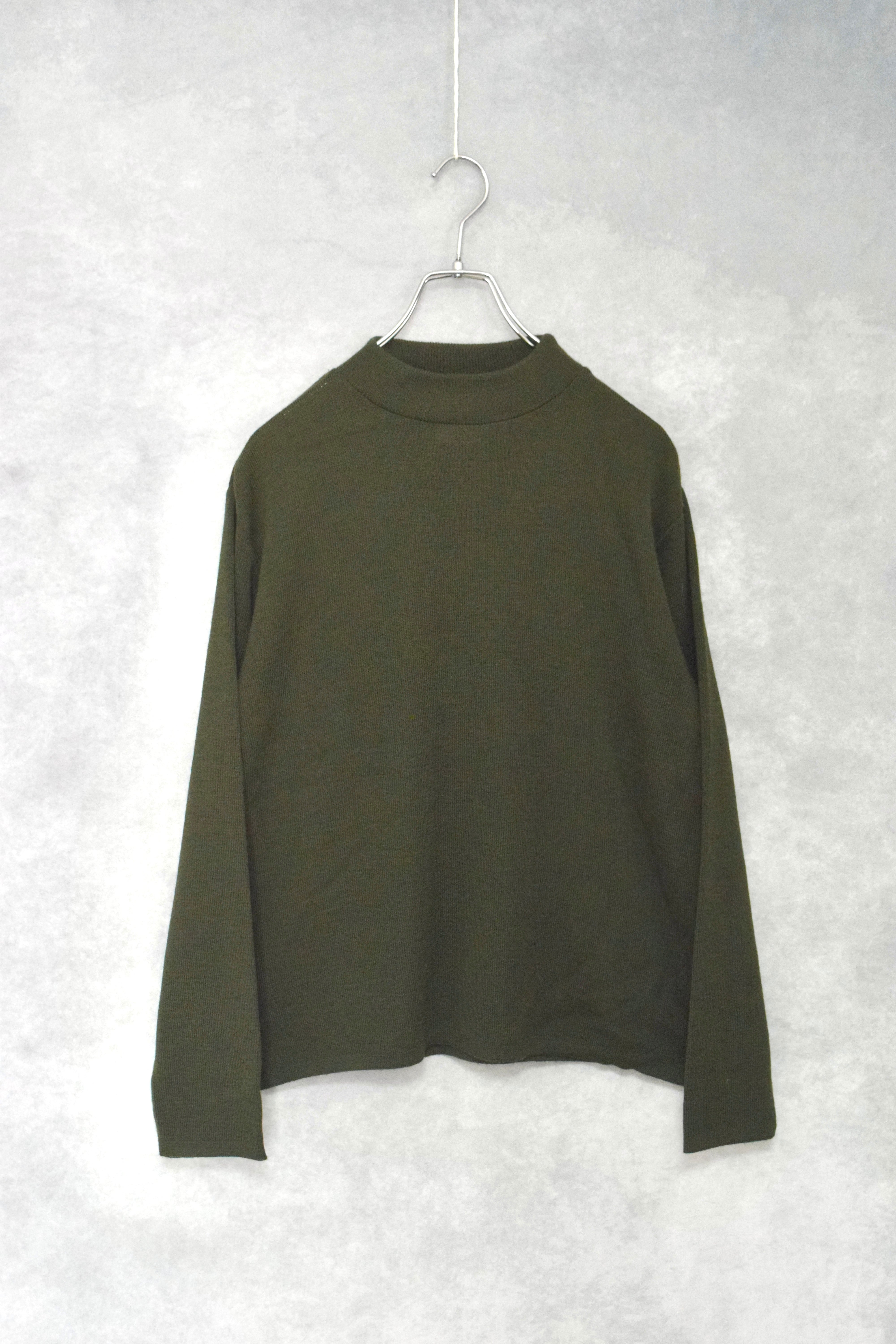 メリノウールxアクリルモックネックハイゲージニットカットソー。