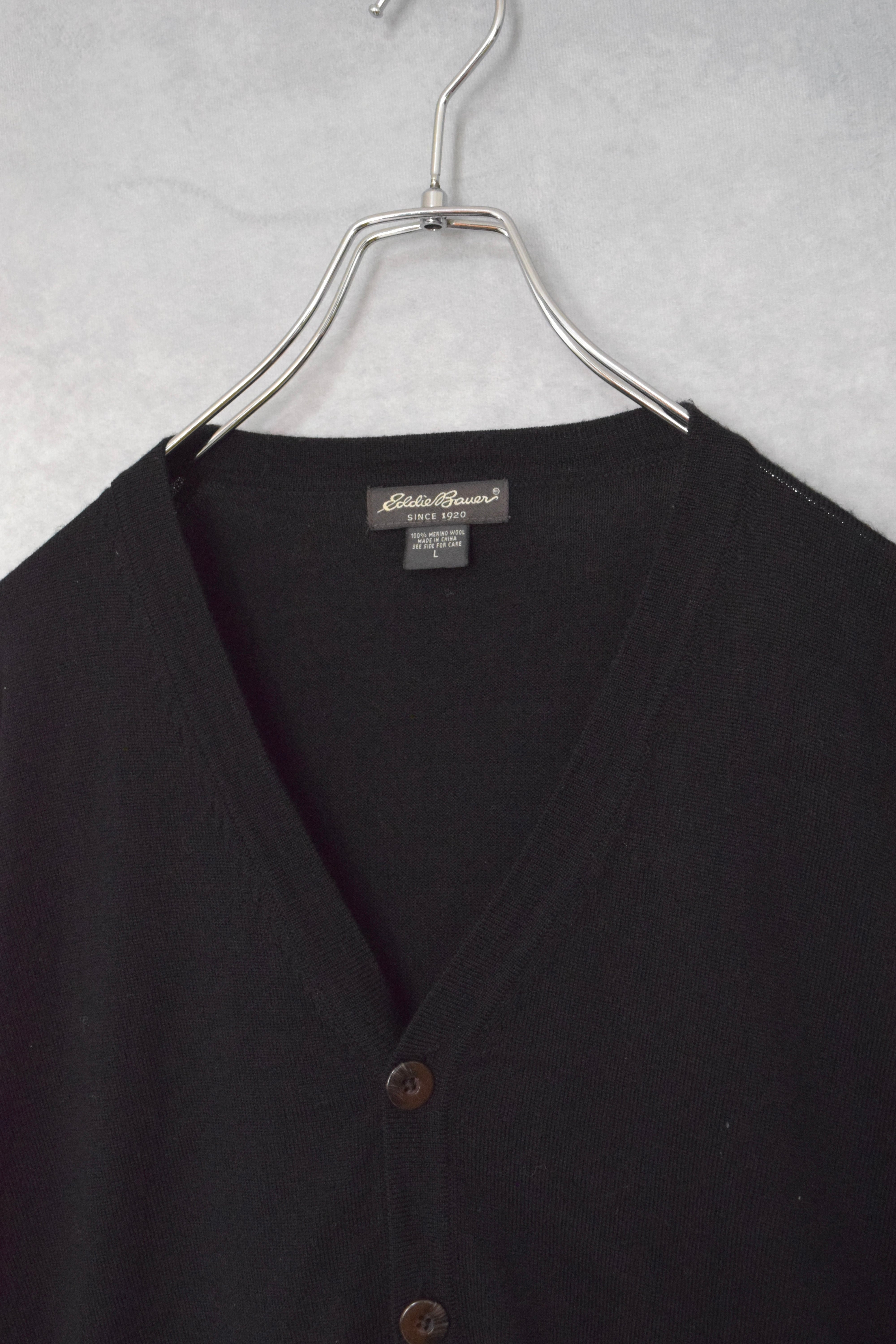 old " eddie bauer “ black merino wool hi gauge knit cardigan / size L