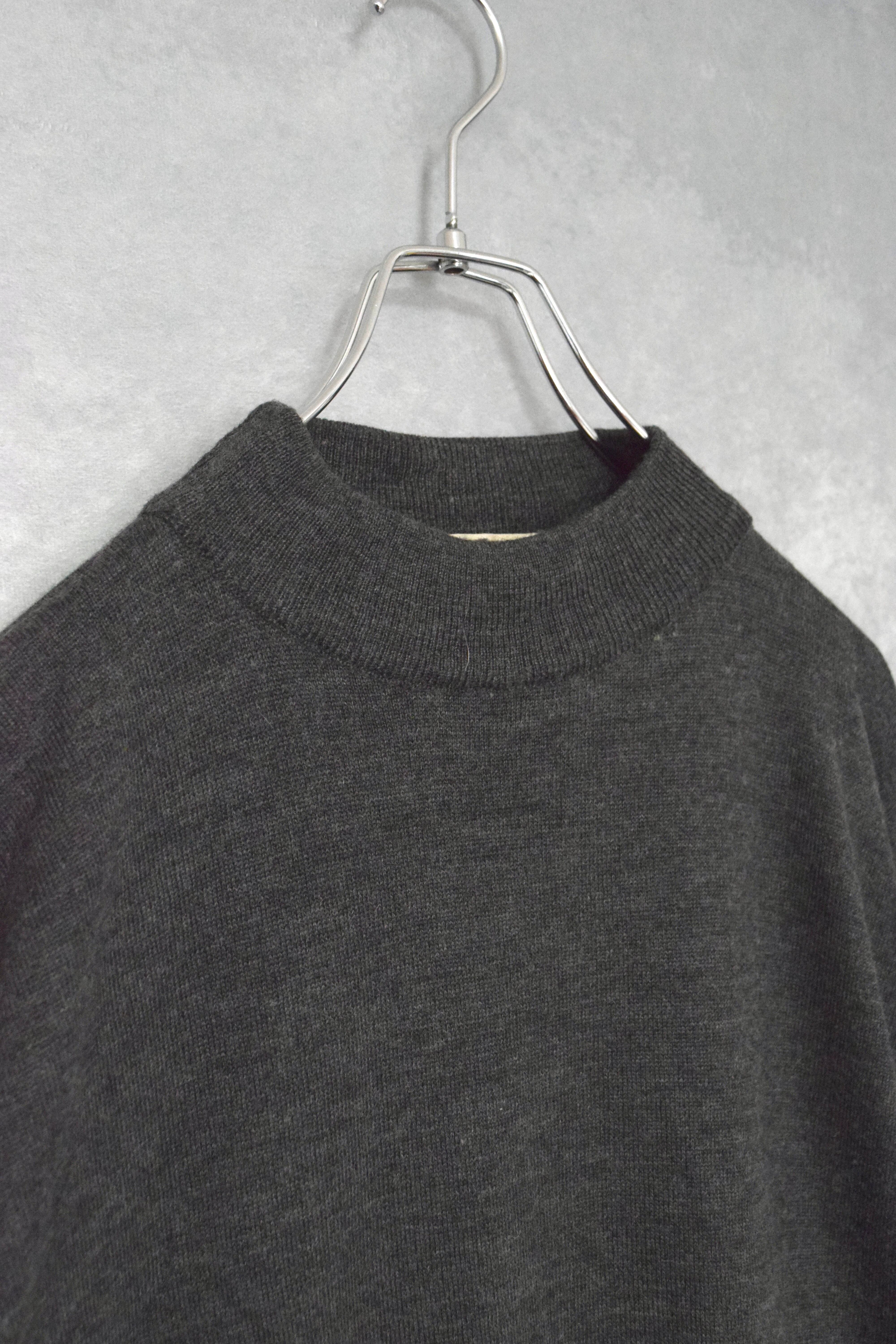 モックネックウールxアクリルハイゲージニットカットソー。
