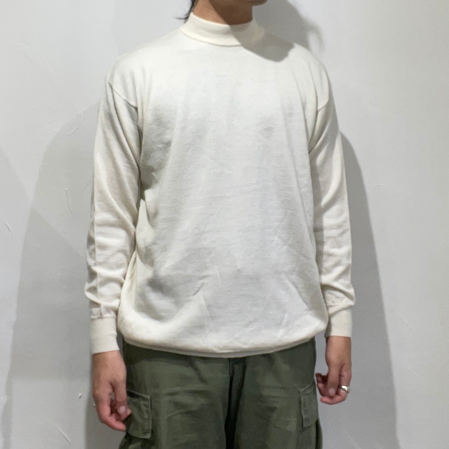 モックネックウールxアクリルハイゲージニットカットソー。