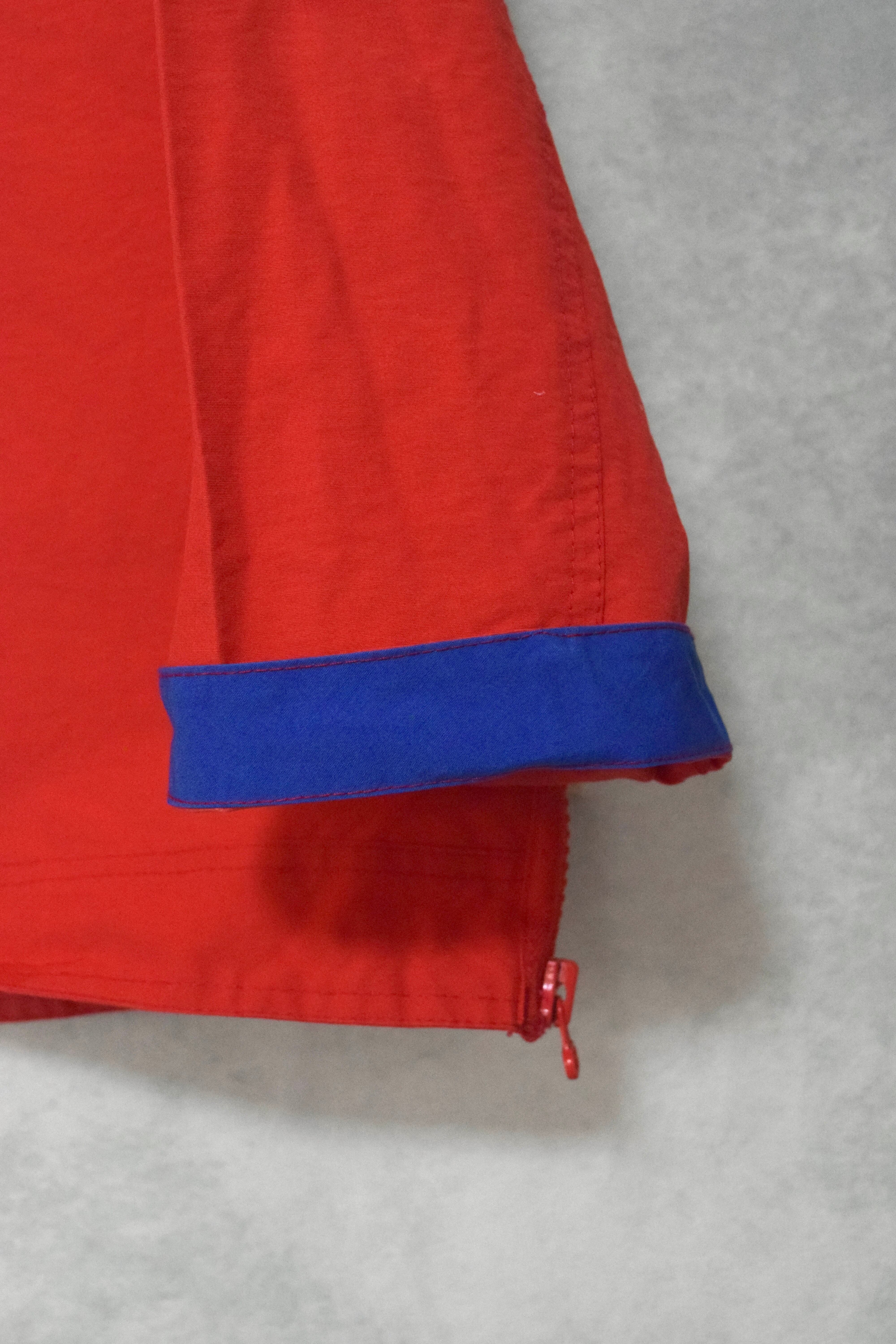 袖先を裏返すと出てくるブルーやフード裏、ハーフジップ裏のブルーが良い具合に効いてます。