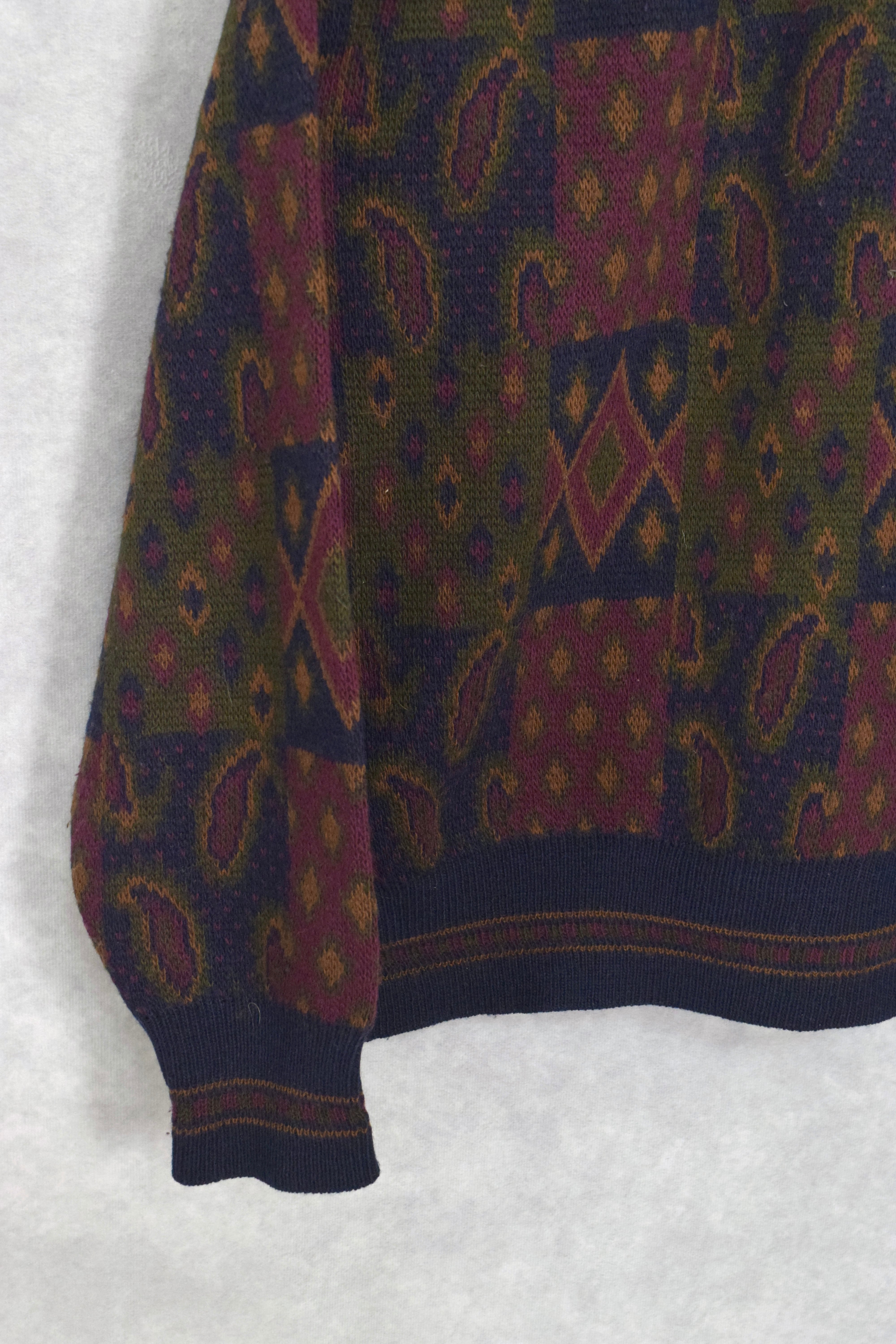 old crazy pattern wool x acrylic knit / tailored in italy / size L
