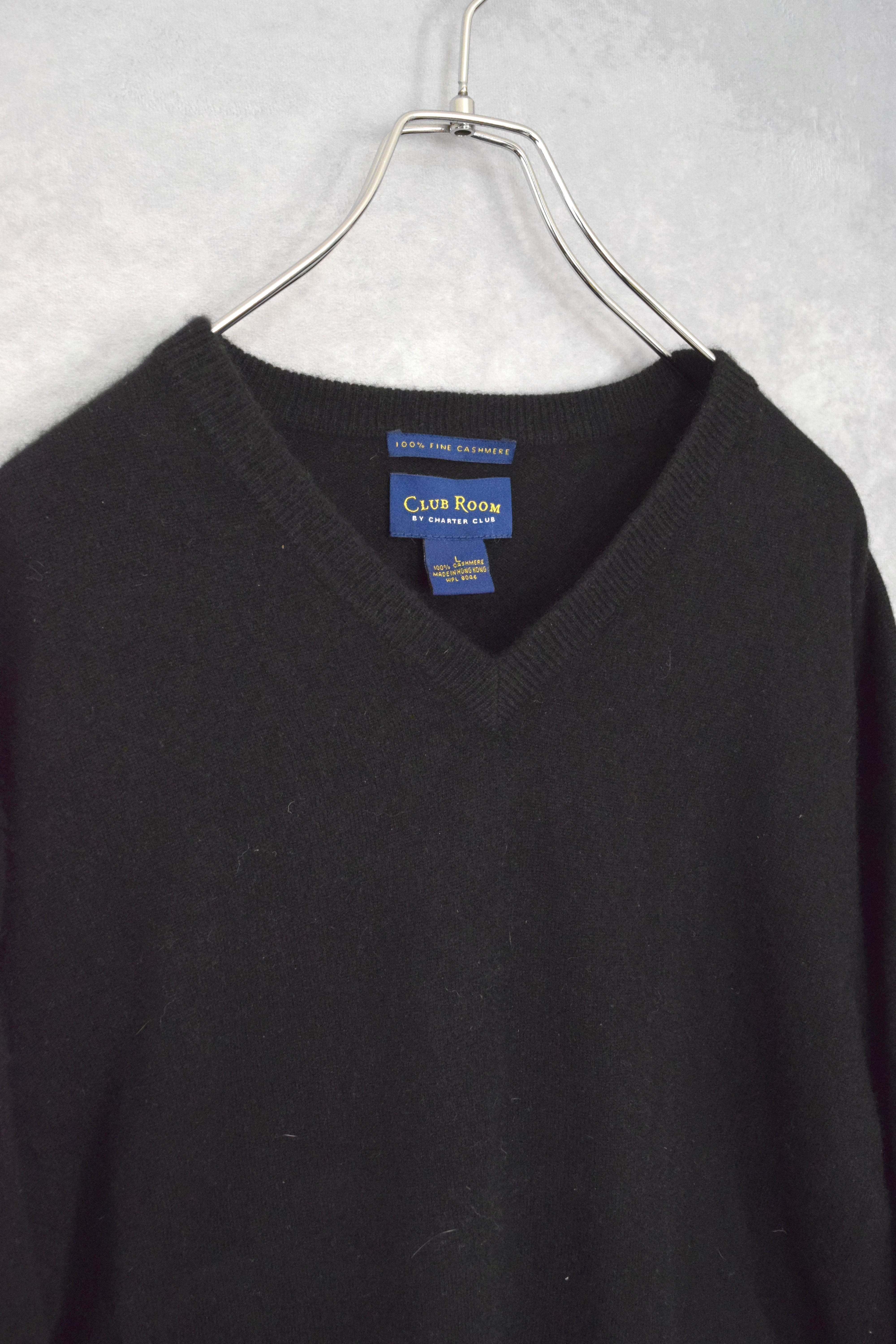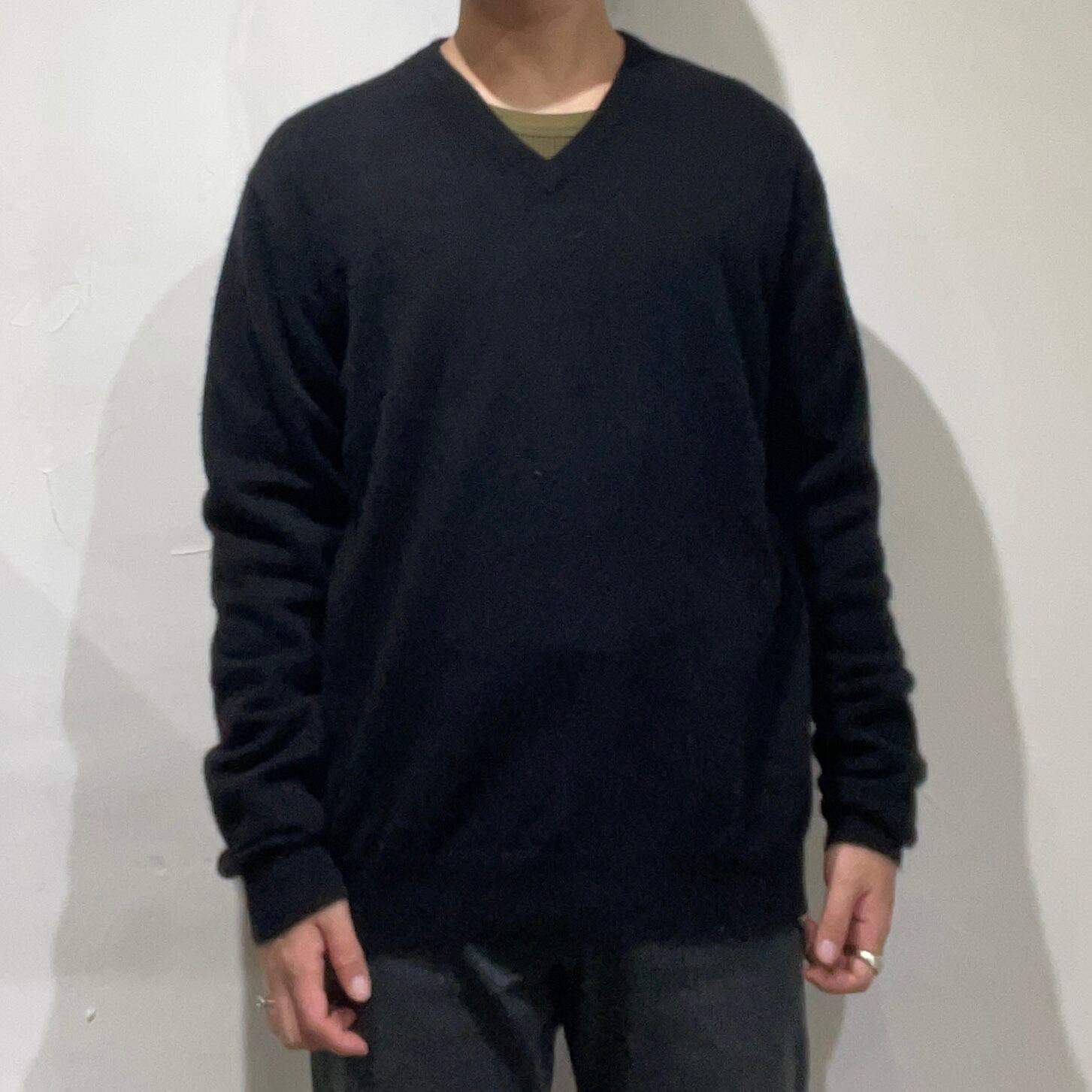 ブラックカシミヤVネックニット。