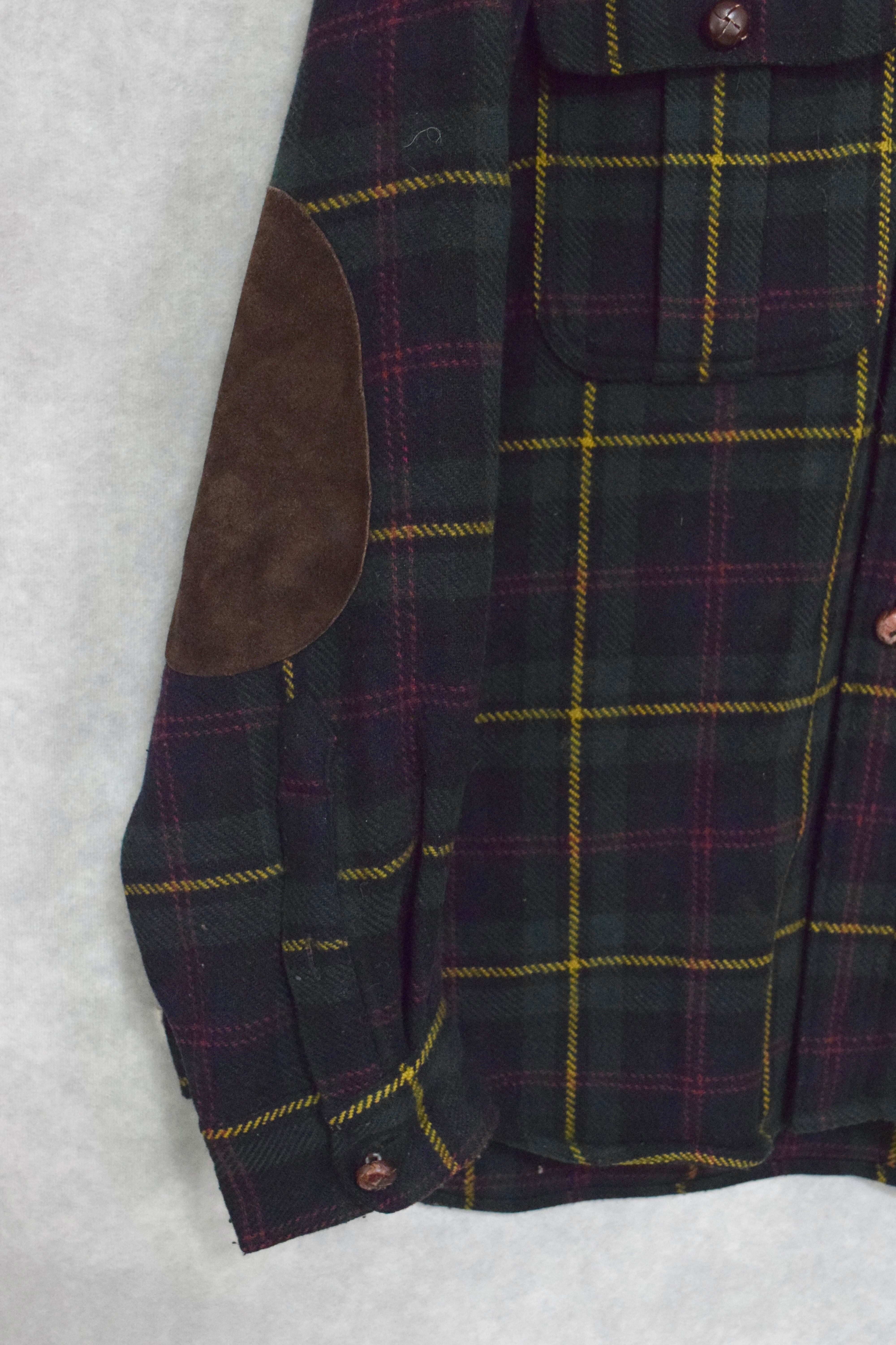 old " banana republic " wool shirt with leather patch / made in Portugal / size s (about m)