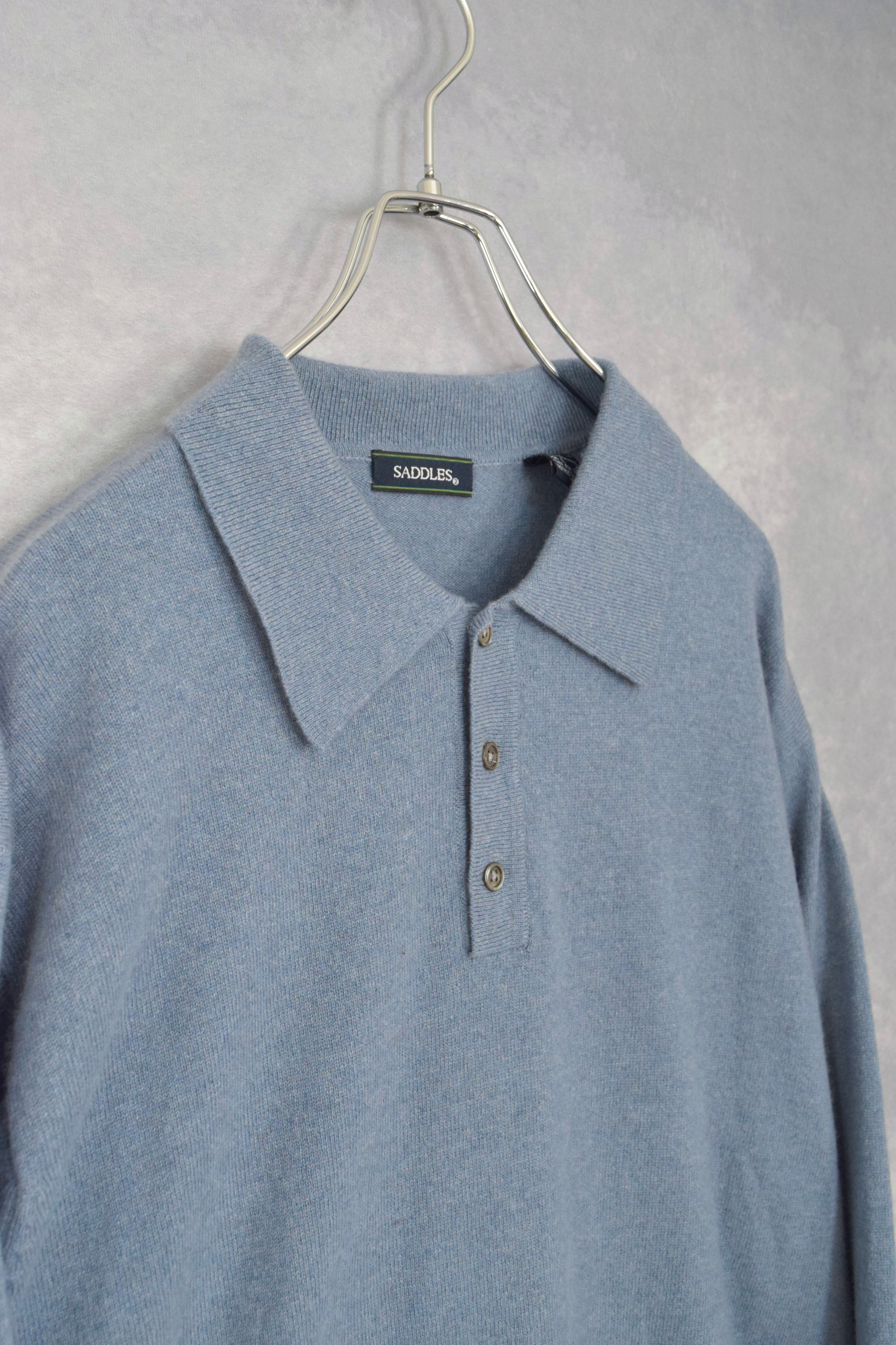 cashmere hi gauge knit polo shirt / size L