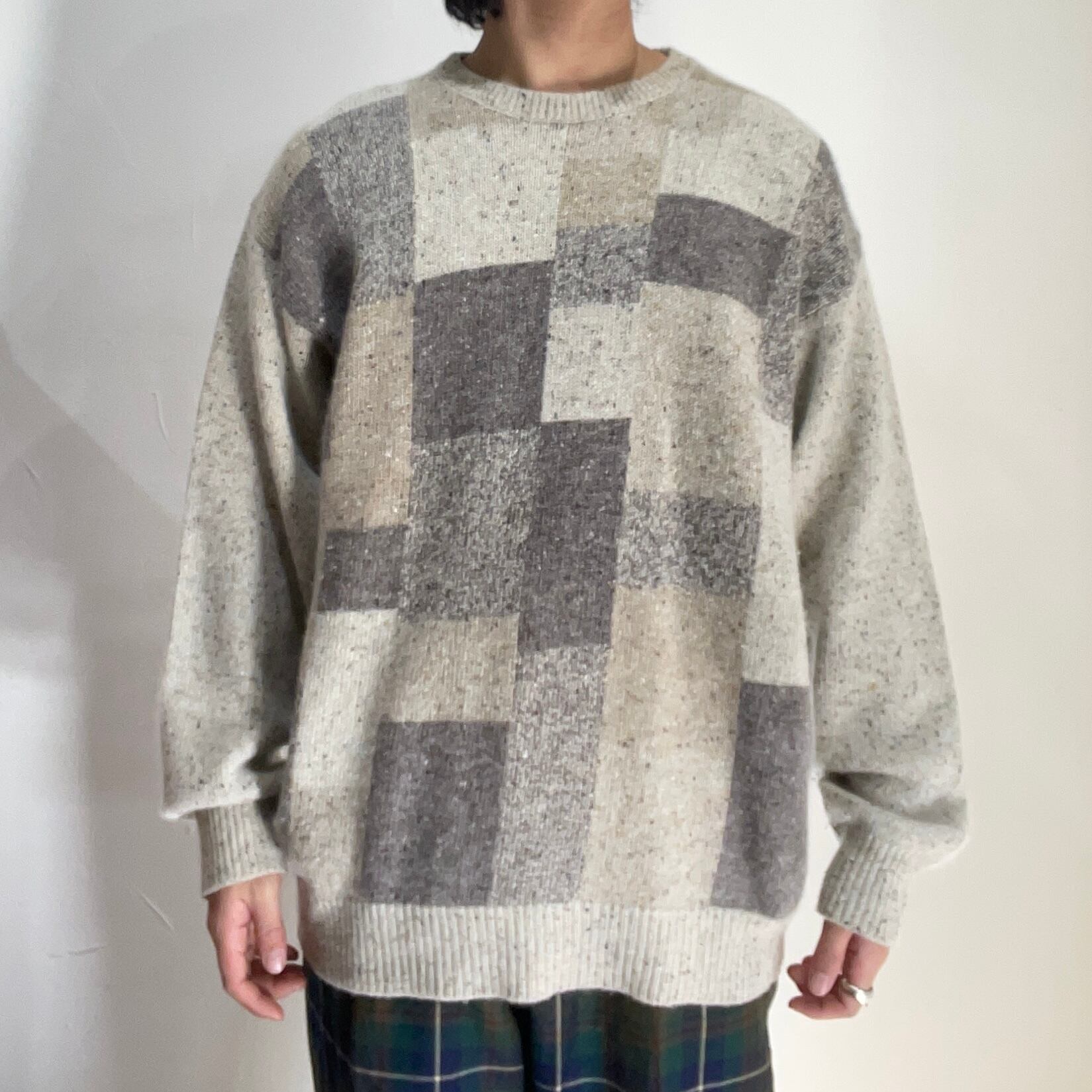 old " botany " panel pattern wool knit / size ML